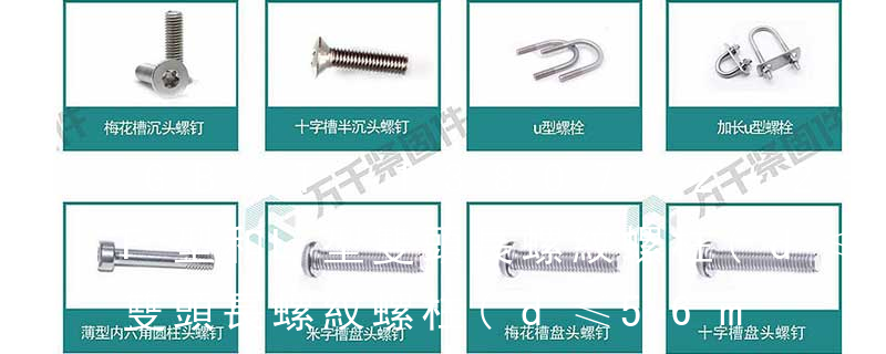 GB5779.1 緊固件表面缺陷螺栓,螺釘和螺柱一般要求 GB5779.3 緊固件表面缺陷螺栓,螺釘和螺柱特殊要求 GB90 緊固件驗收檢查,標志與包裝 GB1237 緊固件的標記方法 雙頭螺栓標準GB-T 898 雙頭螺栓標準規定了螺紋直徑為M2~M56, GB898雙頭總長計算L=bm+l;l=x+b ;bm=d*1.25。雙頭螺柱最常用的形式是兩端有螺紋,中間是光桿。最典型的用途:地腳螺栓、或者類似地腳螺栓的地方、較厚的連接,用普通螺栓無法實現的時候。螺柱焊的工件必須是從一側