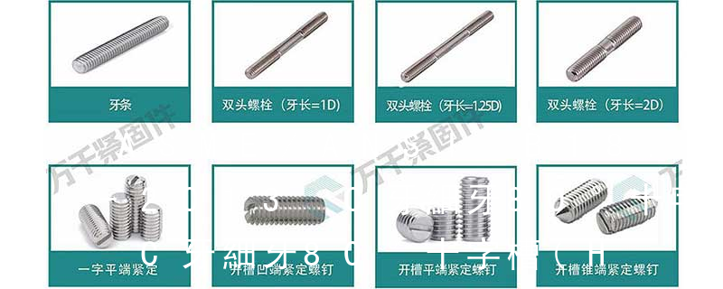 十字槽半沉頭自切自攻螺釘,六角頭自切自攻螺釘。3、自擠自攻螺釘(自攻鎖緊螺釘)自擠自攻螺釘的螺紋一般為機螺紋,很少采用自攻螺紋。在扳擰方式中,為確保高速自動裝配扳手的使用,一般不推薦采用開槽。自擠自攻螺釘的螺桿 B.S.W. 標準惠氏粗牙系列,一般用途圓柱螺紋(英制牙)B.S.F. 標準惠氏細牙系列,一般用途圓柱螺紋 (英制牙)fine pitch thread 細牙full thread 全螺紋 IHH=ind hex head 鋸 六角頭PH=phillips 十字槽Pan 圓頭(盤頭)Oval 半沉頭