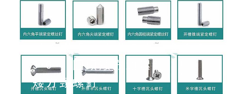 螺絲 螺絲釘可分為:不脫出螺釘、組合螺釘、墻板釘、纖維板釘、鏈帶螺釘、鉆尾螺釘、微型螺釘、電子螺釘、木螺釘等等。根據它的頭型又可分為:半沉頭、六角頭法蘭面、沉頭方頭、扁圓頭、圓柱頭、盤頭等等,根據螺絲的槽 螺母依據屬性主要有國標(GB)、德標(DIN)、國際標準(ISO)、日標(JIS)、美標(ASTM/ANSI)等標準。其中、國標、德標、日標用M表示(例如M8、M16),美制、英制則用分數或#表示規格(如8#、10#、1/4、3/8)。