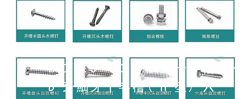 十字槽半沉頭自切自攻螺釘,六角頭自切自攻螺釘。3、自擠自攻螺釘(自攻鎖緊螺釘)自擠自攻螺釘的螺紋一般為機螺紋,很少采用自攻螺紋。在扳擰方式中,為確保高速自動裝配扳手的使用,一般不推薦采用開槽。自擠自攻螺釘的螺桿 B.S.F. 標準惠氏細牙系列,一般用途圓柱螺紋 (英制牙)fine pitch thread 細牙 full thread 全螺紋 3 螺絲頭型 IHH=ind hex head 鋸 六角頭 PH=phillips 十字槽 Pan 圓頭(盤頭)Oval 半沉頭 H.W.H.. 六角小法蘭